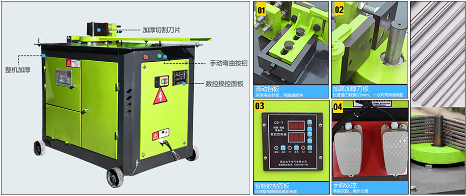 數(shù)控彎箍機(jī)采用先進(jìn)計(jì)算機(jī)數(shù)字控制,自動(dòng)快速完成鋼筋調(diào)直、定尺、彎箍、切斷。該機(jī)效率極高,可替代20-30名鋼筋工人,在鋼筋加工領(lǐng)域獨(dú)樹一幟。